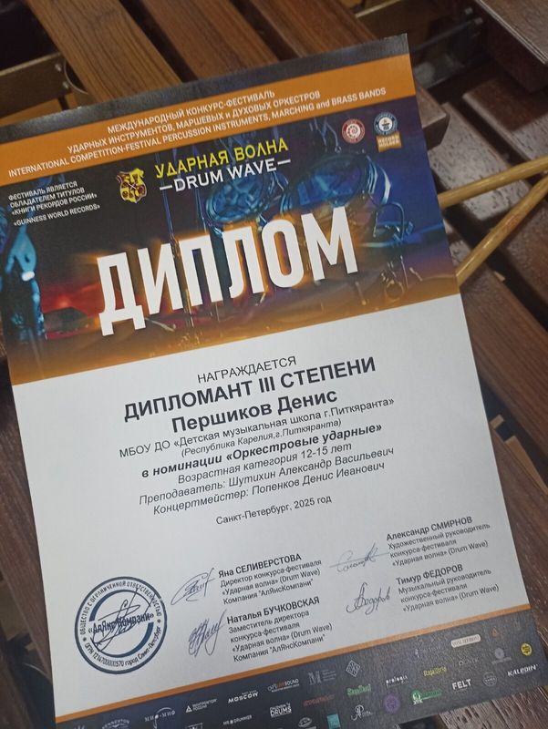 Карелию на конкурсе представлял учащийся Детской музыкальной школы г. Питкяранта Денис Першиков. Он стал Дипломантом III степени в номинации "Оркестровые ударные инструменты".